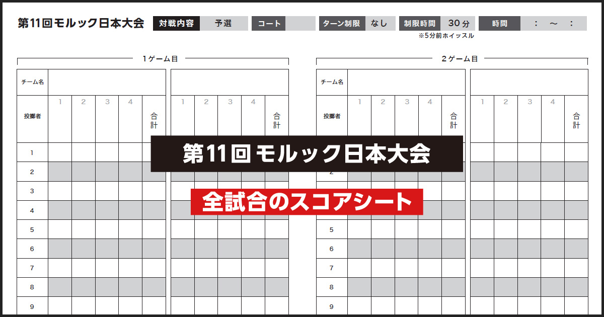 2024年11月9日(土)~10日(日)に秋田県で開催される第11回モルック日本大会用スコアシートです。